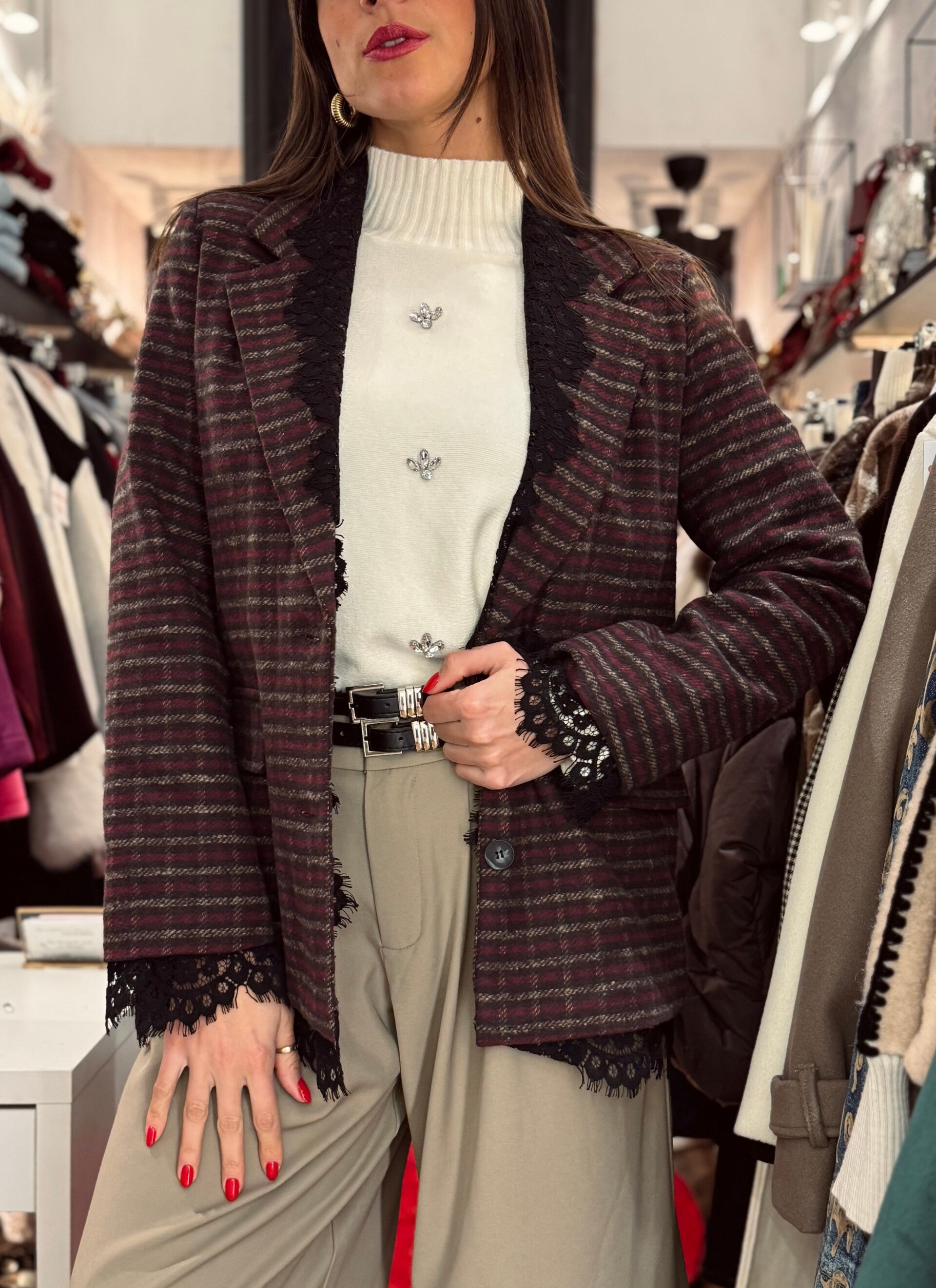 Blazer scozzese con pizzo bordeaux -50%