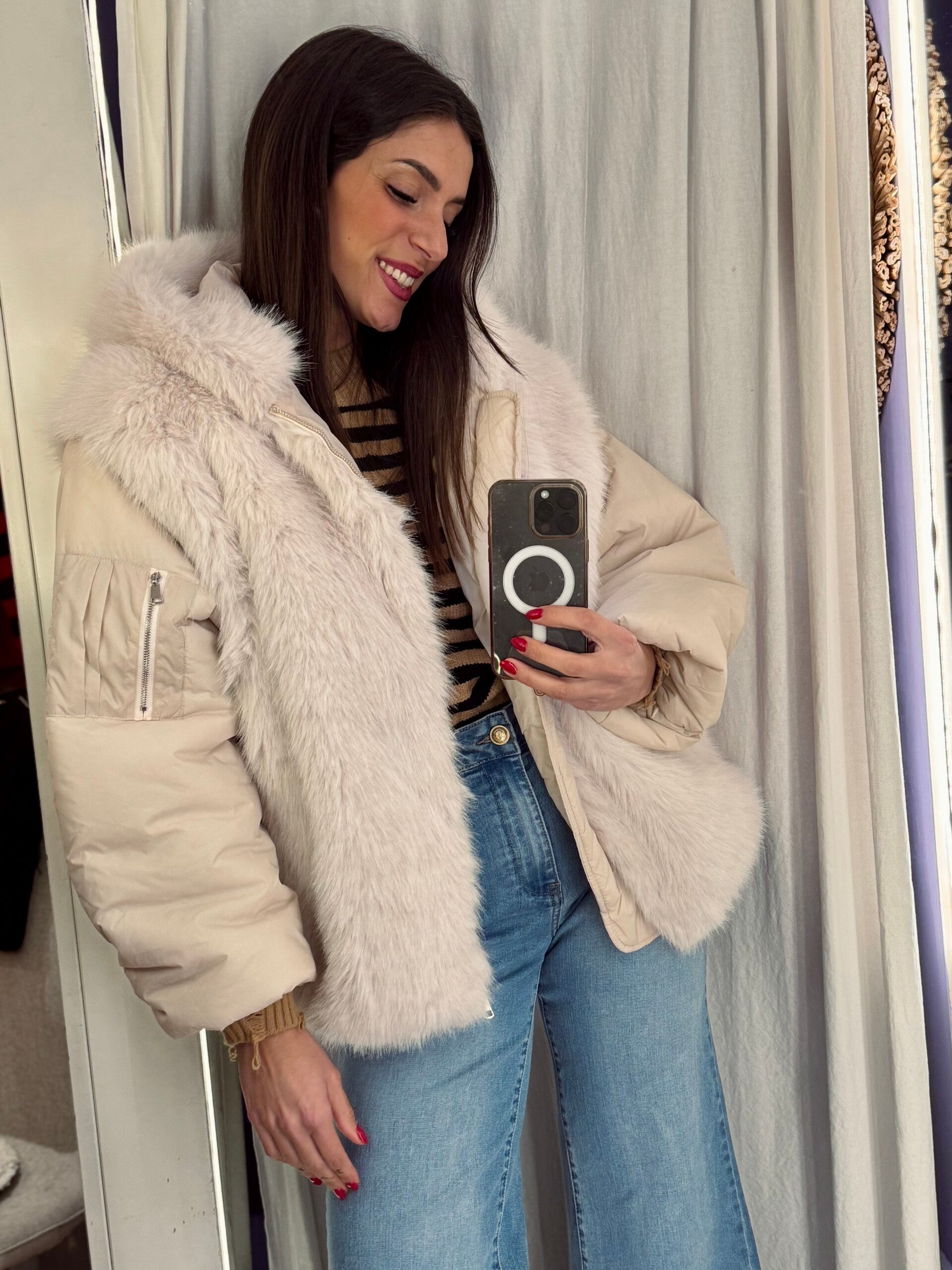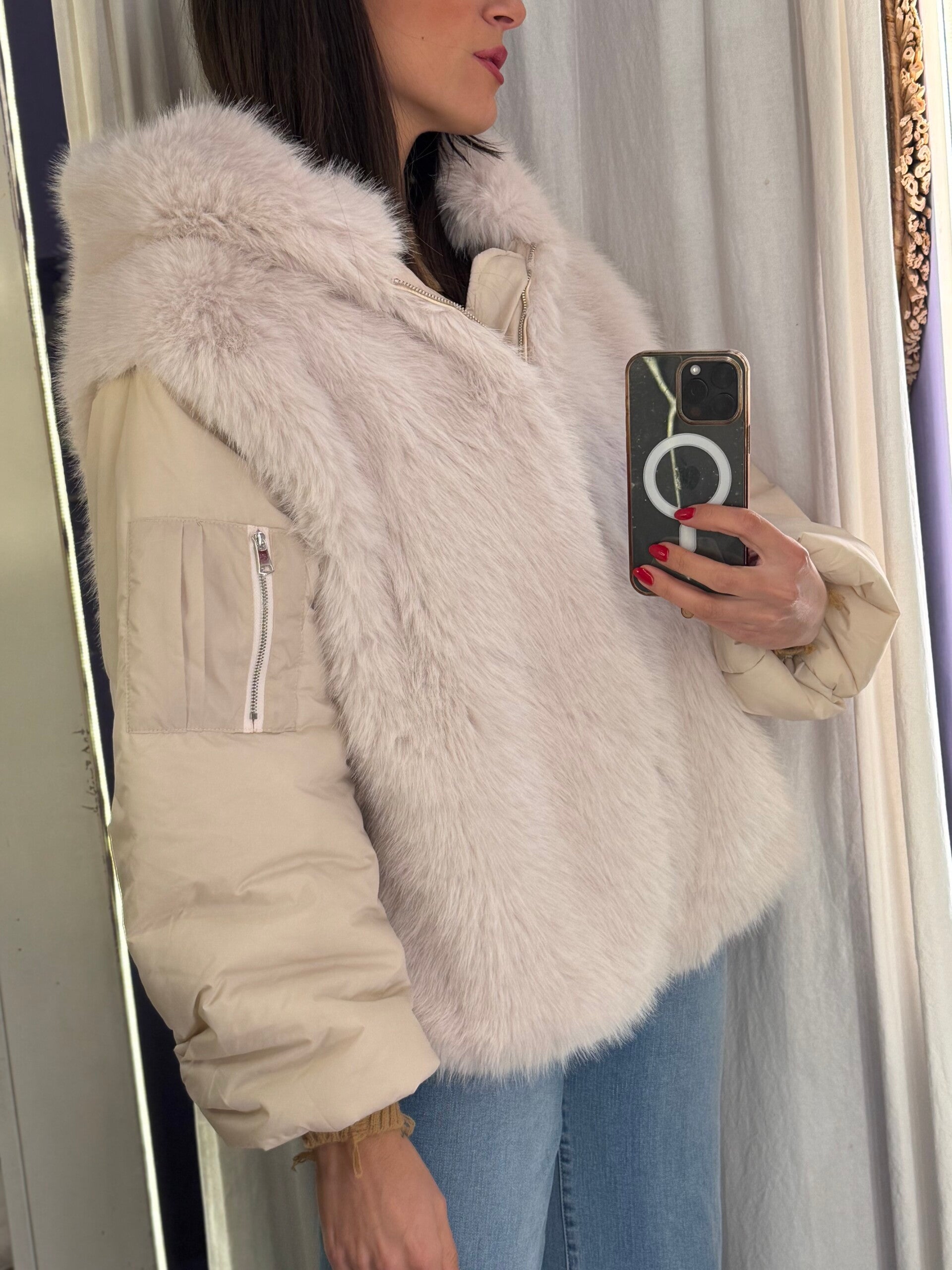 Piumino panna con ecopelliccia
