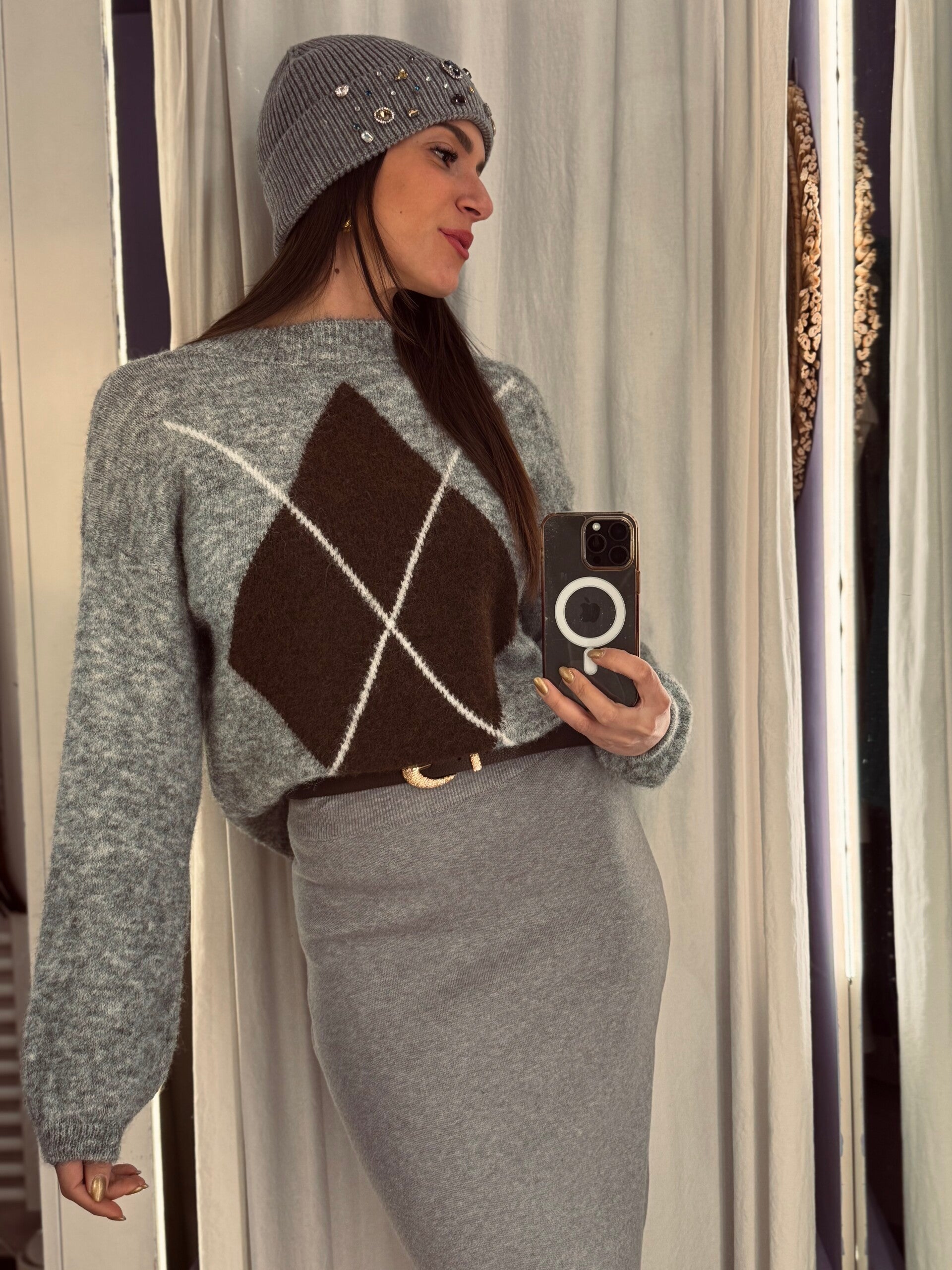 Maglione con losanghe grigio -30%