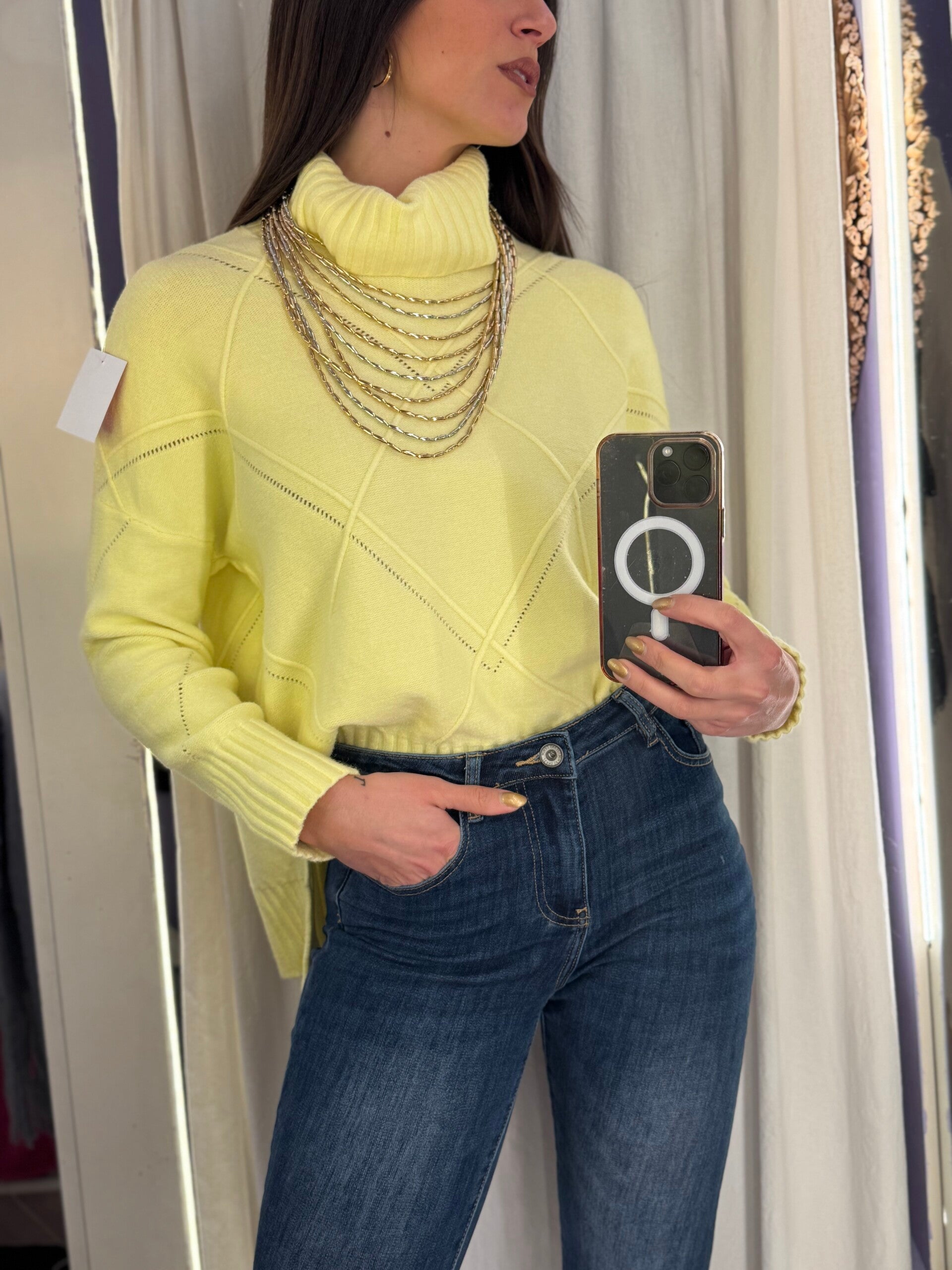 Maglione a rombi giallo -20%