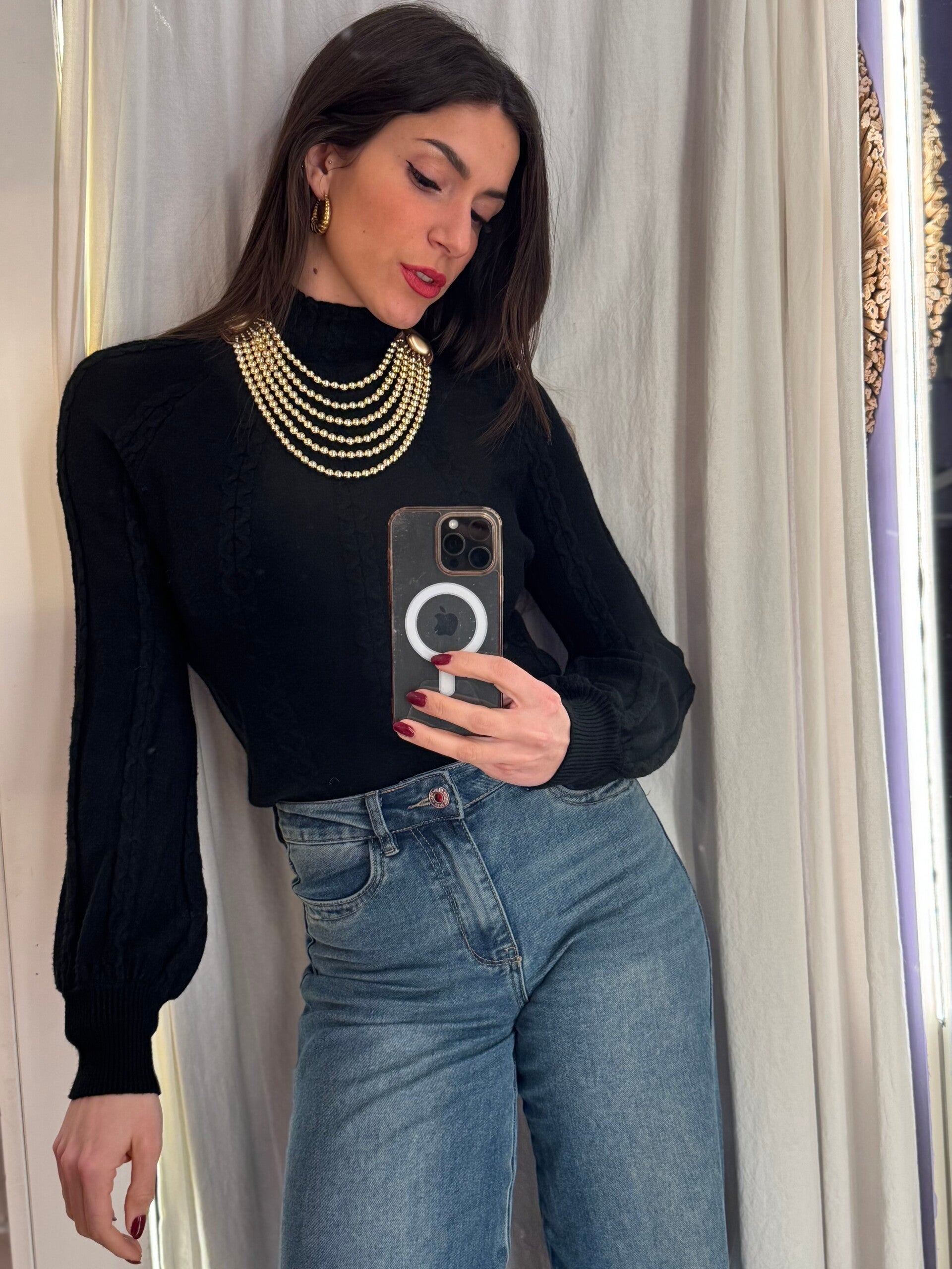 Dolcevita con trecce nero -20%