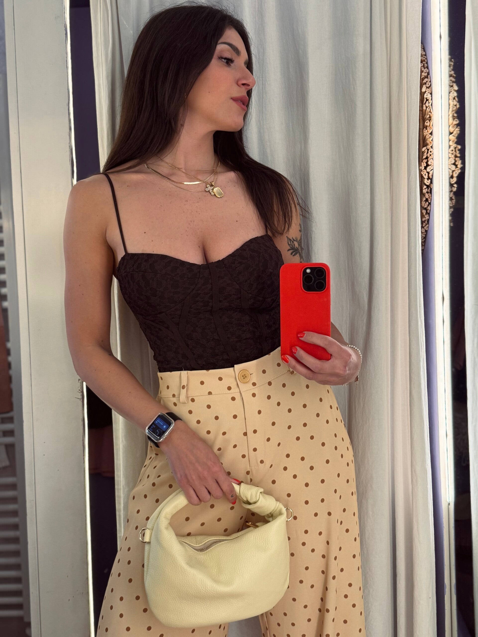 Top a corpetto con struttura che valorizza la silhouette e dettagli in pizzo raffinati. Sensuale ma elegante, perfetto sia sotto giacche che come protagonista del look.